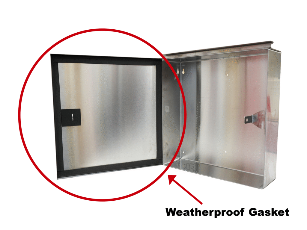 • Weather-Resistant Design: Equipped with a weatherproof door seal and overhanging sill to safeguard contents from environmental elements.